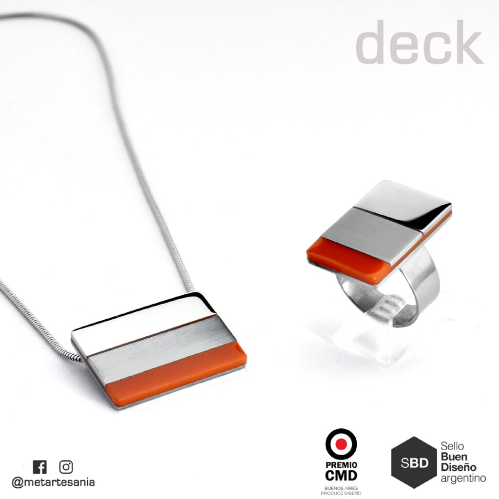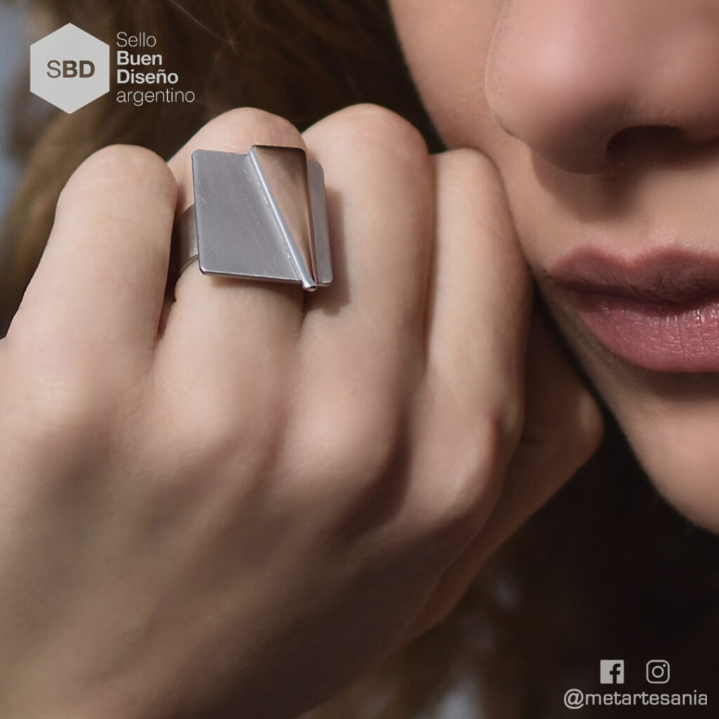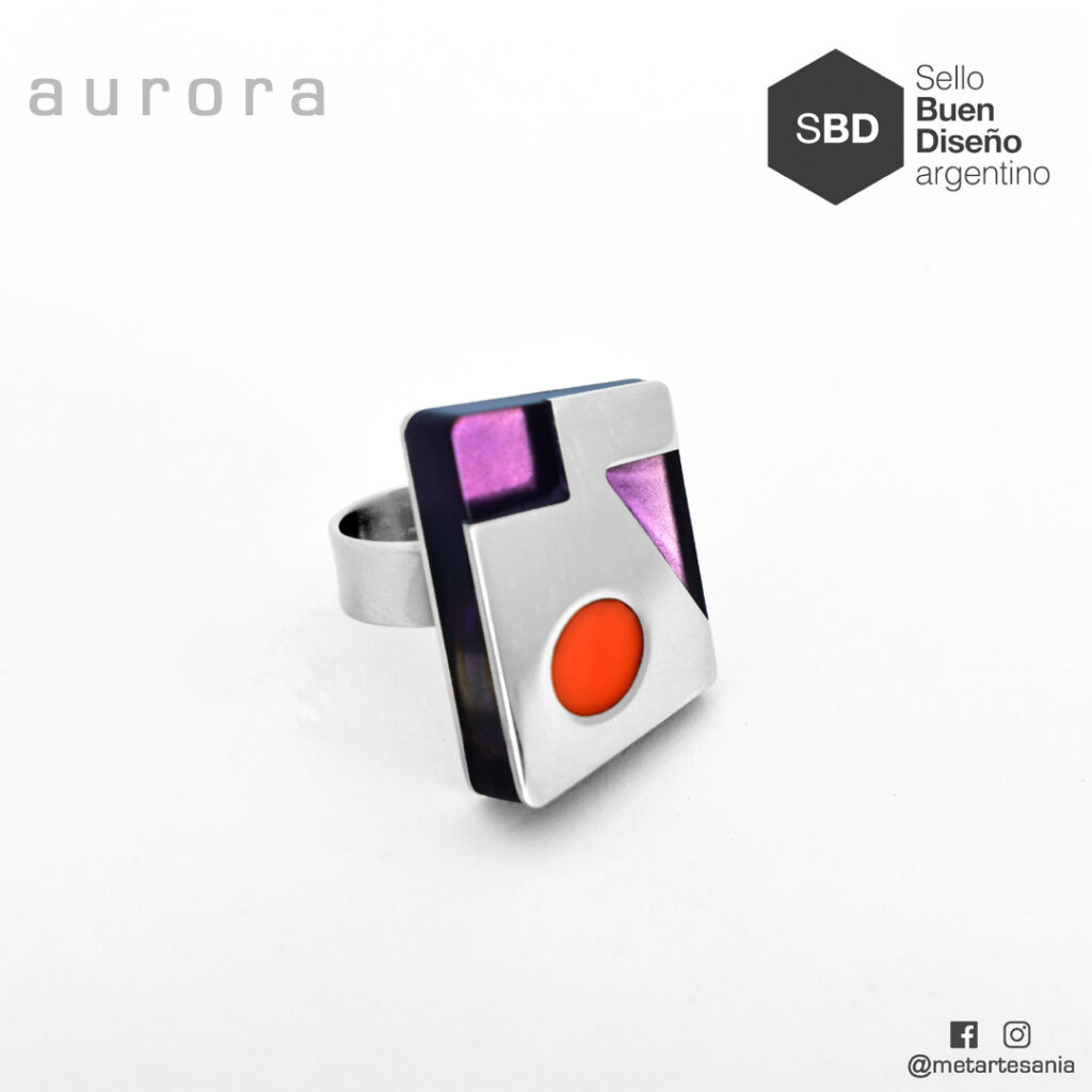 Joyería Contemporánea: anillos, colgantes, pulseras y aros. Trabajo con diferentes metales (acero, alpaca, plata, aluminio, etc.) y resina.