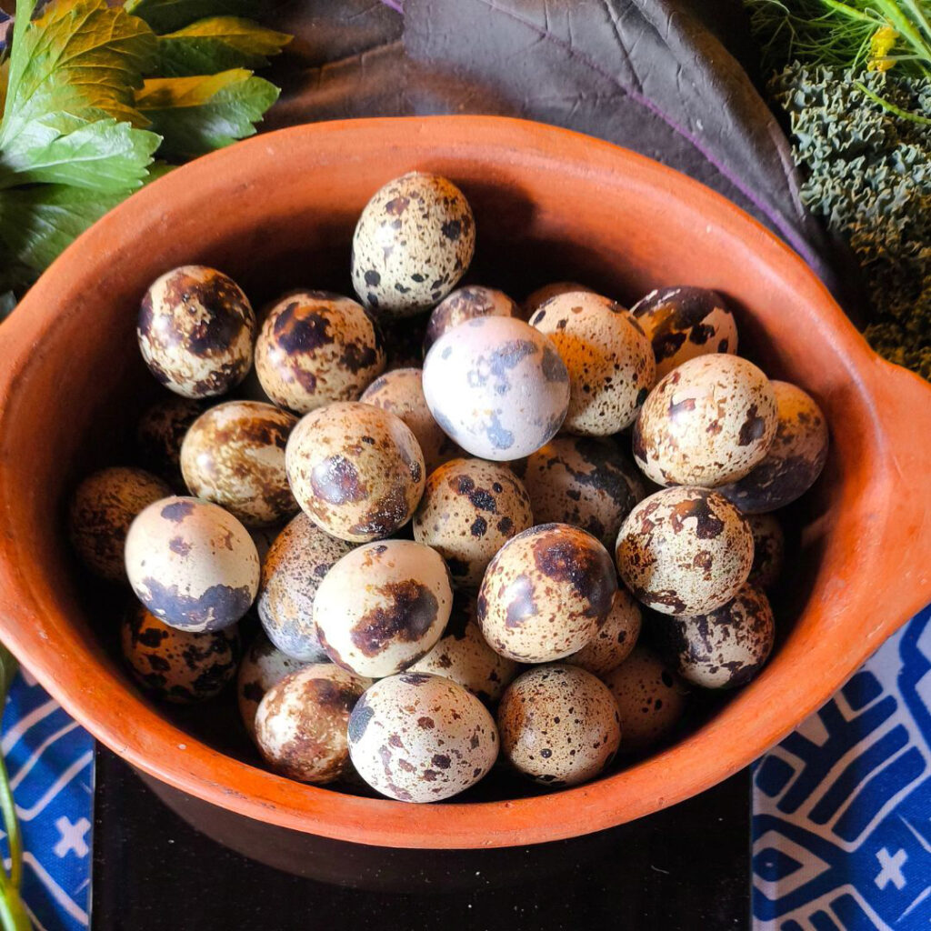 Es una producción agroecológica de huevos de codorniz, huevos de colores de gallinas, huevos de pata, gansa y ñandú, disponibles según estacionalidad.