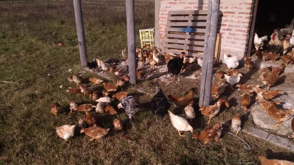 Somos una familia instruida en la educación pública donde rescatamos las viejas prácticas (a campo) para la producción de carne fresca de pollo y huevos de campo.