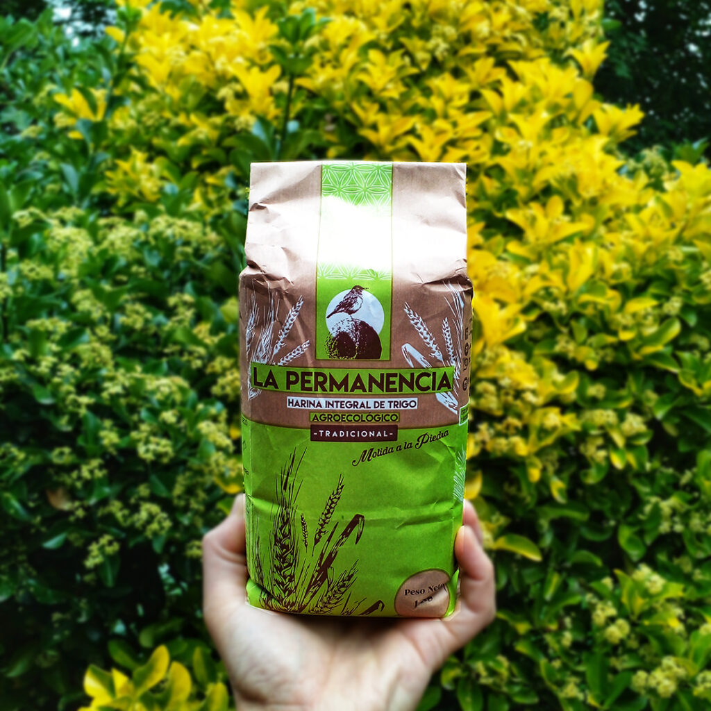 Molemos los granos en nuestro molino de piedras, el resultado es una harina integral, fina y de excelente calidad, que conserva todos los nutrientes del trigo: el endospermo (parte blanca de la harina), el germen y el salvado.