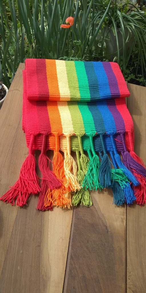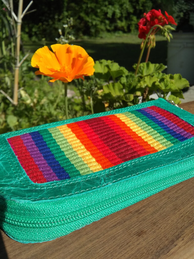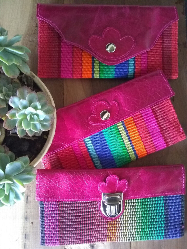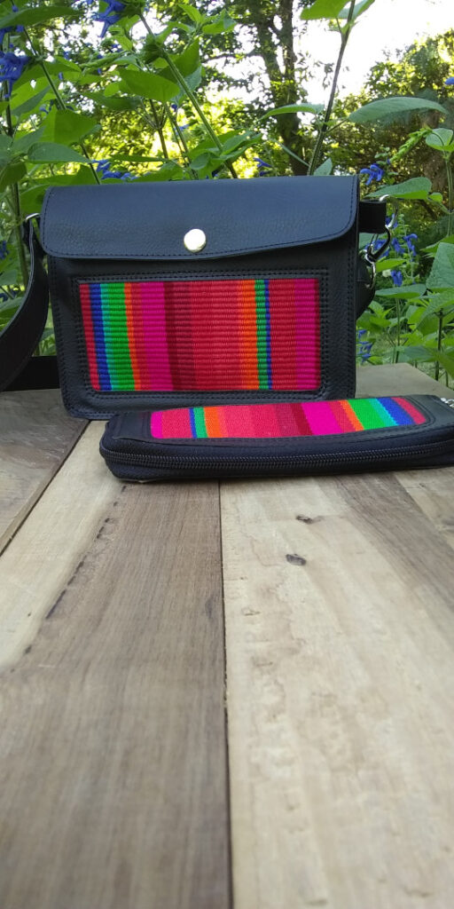 Diseño y confección de textiles tejidos en telar mapuche incorporados a carteras, billeteras, accesorios y objetos artísticos.