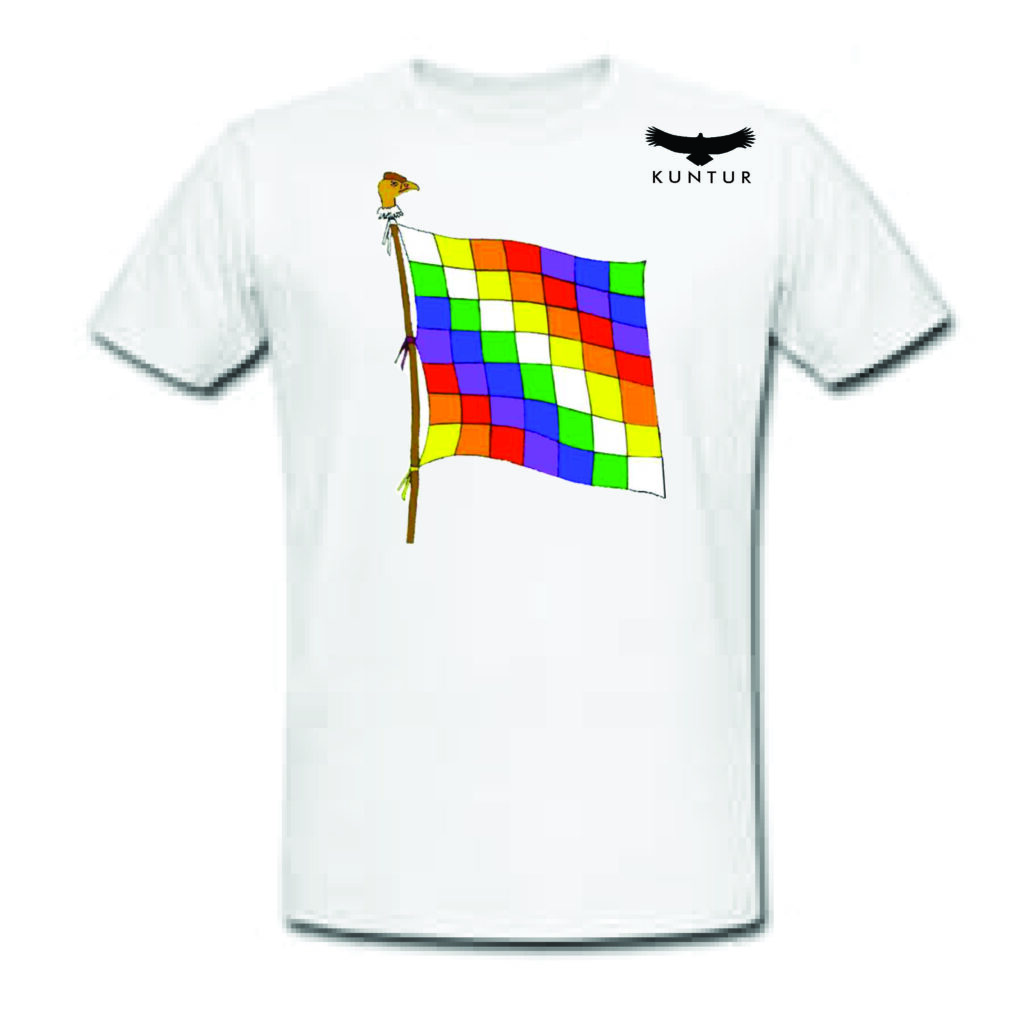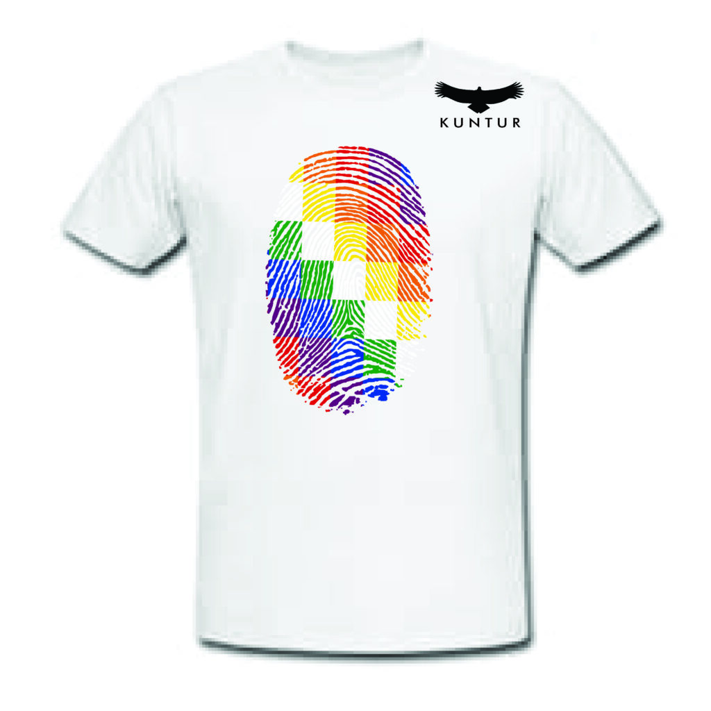 Remeras estampadas con motivos naciolanales y latinoamericanos con perspectiva de pueblos originarios.